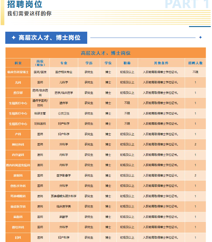 以上崗位均享受醫(yī)院科研獎(jiǎng)勵(lì)、培訓(xùn)進(jìn)修、晉升職務(wù)職稱(chēng)等權(quán)利,以及五險(xiǎn)一金、用餐補(bǔ)助、帶薪年休假、工會(huì)福利等待遇。