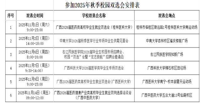 (二)歡迎大家到高校雙選會現(xiàn)場投遞簡歷及報名。(參加校園雙選會安排如下)