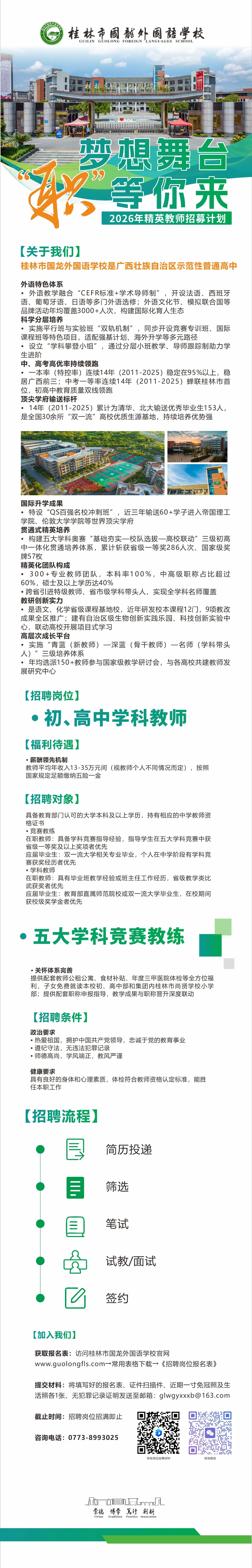 原文標題:桂林市國龍外國語學(xué)校2026年精英教師招募計劃
